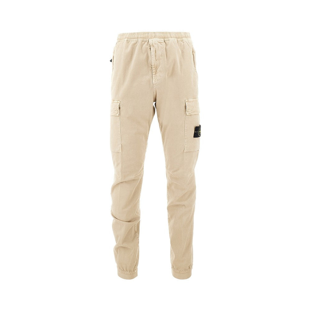 Pants made from stretch organic cotton fabric, featuring tapered leg with side cargo pockets with flap and signature logo badge on the left one. Elasticated waist with internal drawstring. Tapered leg with stretch fabric ankle hem. Side welt pockets with zip closure and one on the back. Regular fit. DETAILS Codice Modello: K2S153100033 Stagione: FW25 Materiale: 97% CO, 3% EA Made in: Romania Sku: 25354 Brand: STONE ISLAND