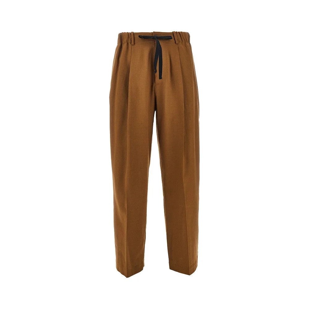 Pants made from lightweight wool canvas, featuring wide leg. Belt loops, zip fly, elasticated waist with drawstring and button closure. Darts on front, side and rear welt pockets. Relaxed fit. DETAILS Model code: 1186 Color code: TOBACCO Season: FW25 Material: 100% WO Made in: Portugal Sku: 29257 Color: Brown Brand: STUDIO NICHOLSON