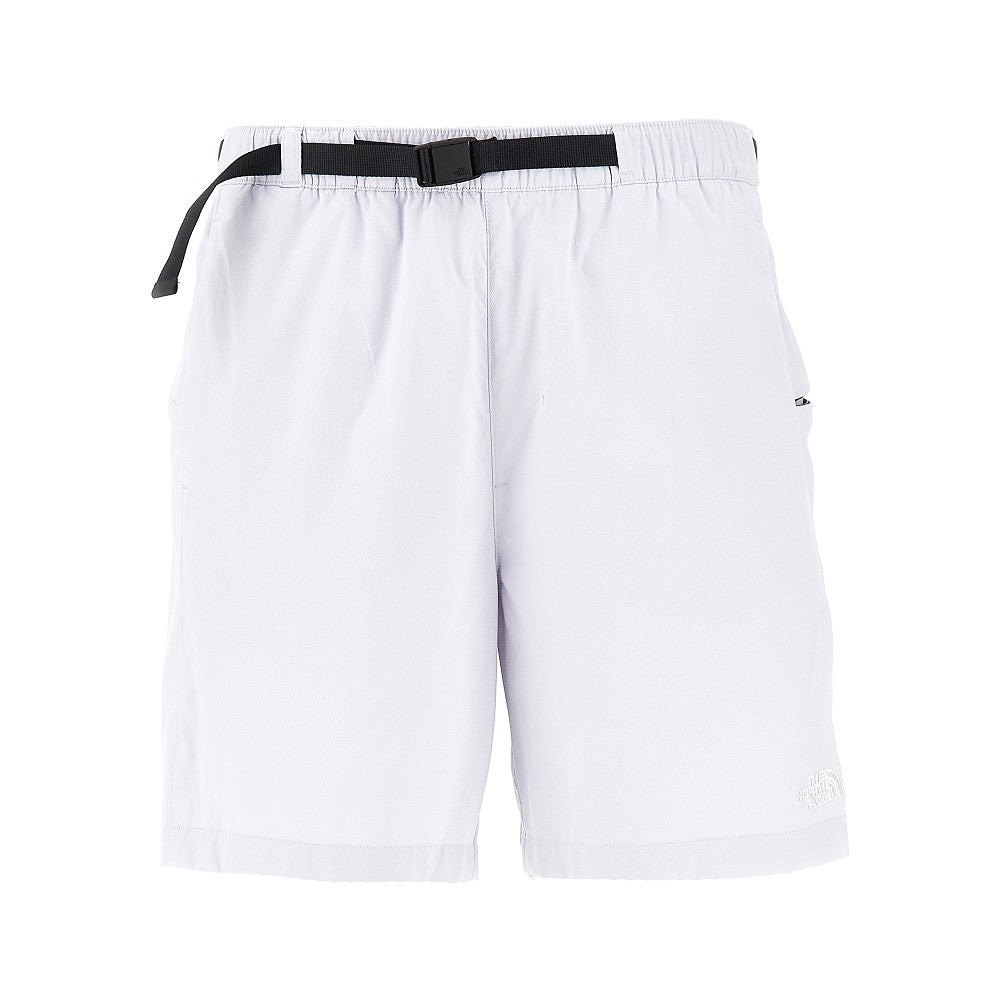 Shorts made from lightweight stretch ripstop nylon with water-repellent finish, featuring elasticated waist with integrated webbing belt with Secure-Lock buckle. Logo embroidery at left leg bottom. Side hand pockets and zippered welt pockets at sides. Relaxed fit. DETAILS Codice Modello: NF0A8BHV Stagione: SS25 Materiale: 94% NY, 6% EA Made in: Jordan Sku: 23013 Brand: THE NORTH FACE