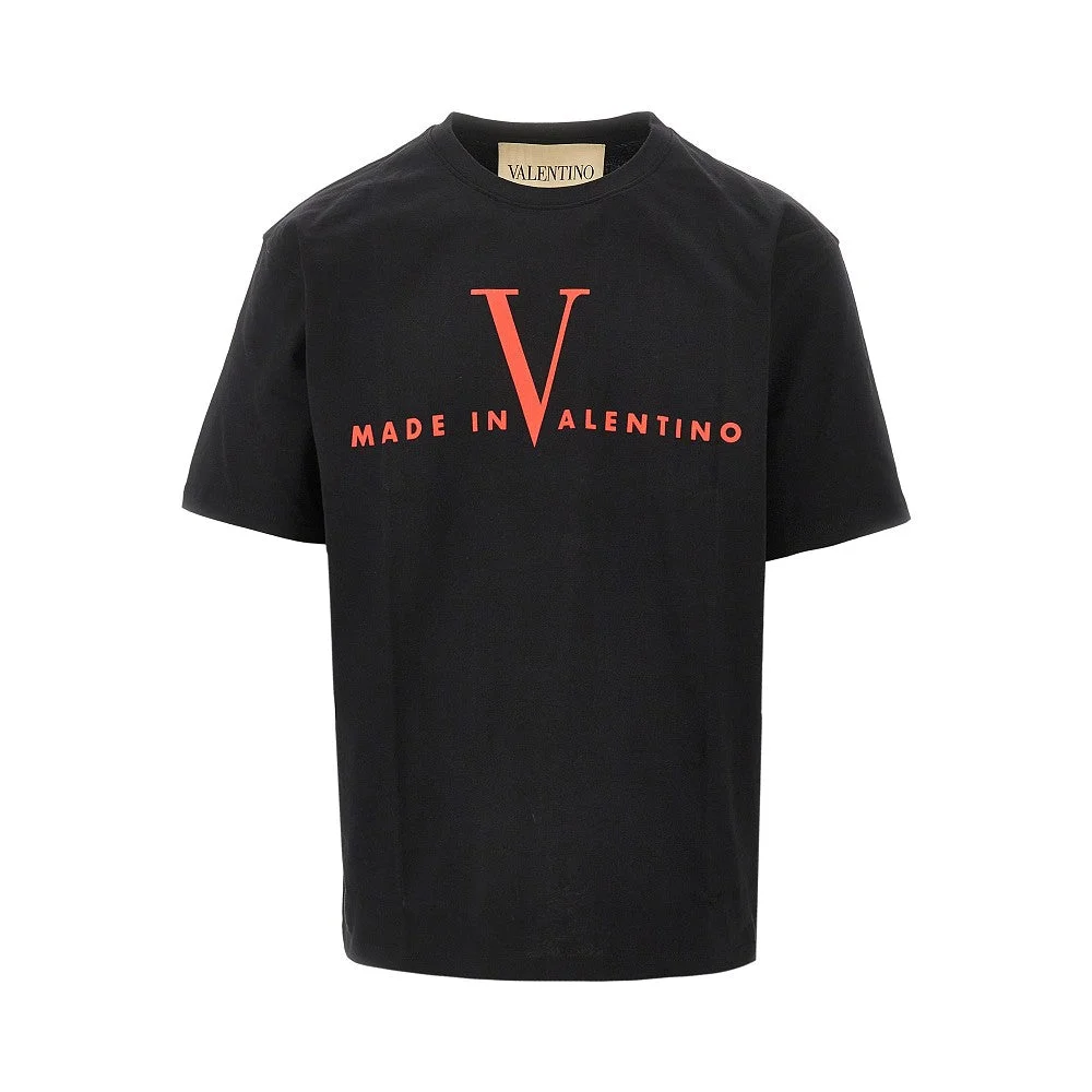 Short-sleeved T-shirt made from cotton jersey, enriched with "Made In Valentino" print at front. Micro ribbed crewneck. Regular fit. DETAILS Model code: 8V3MG16P Color code: 0NR Season: SS26 Material: 100% CO Made in: Italy Sku: 30647 Color: Red Brand: VALENTINO