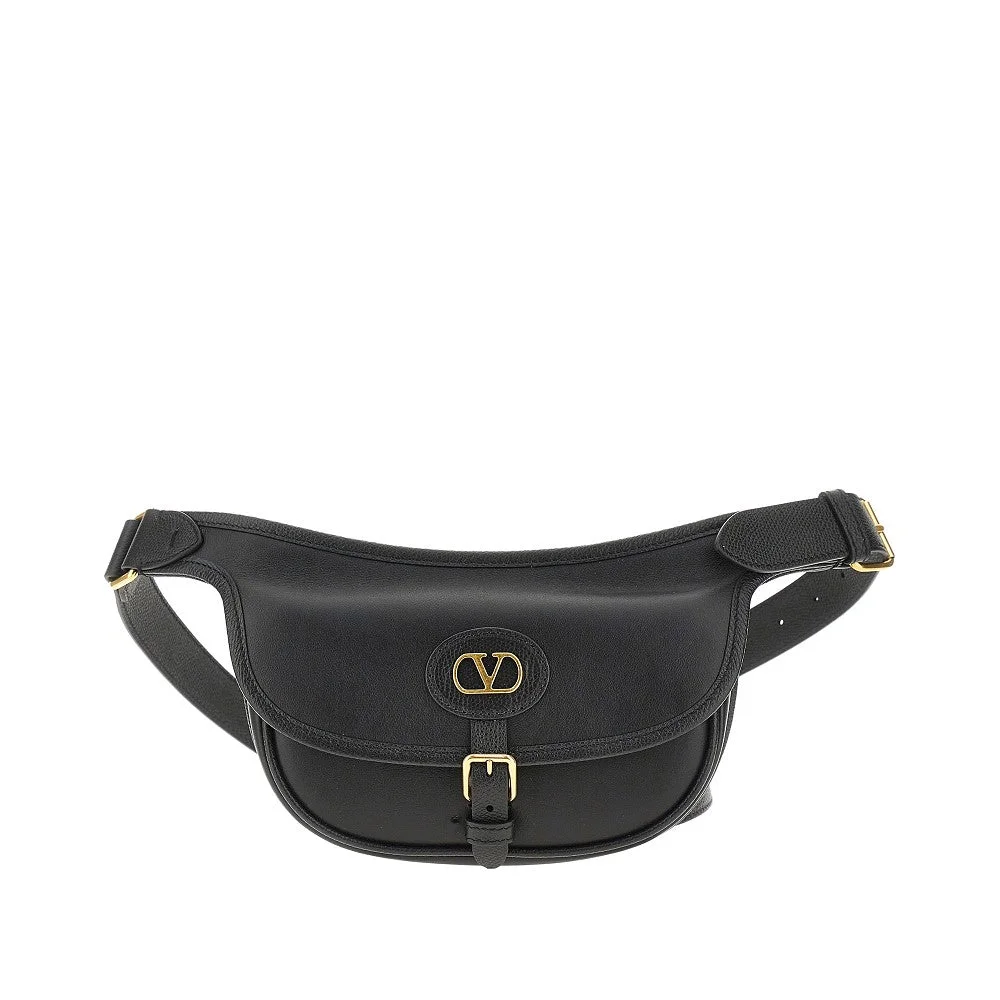 Belt bag made from soft leather with grained leather trimmings, enriched with metal VLogo Signature detail at front. Adjustable belt with double buckle. Flap with magnetic closure and buckle strap closure. Suede interior with two card pockets. Gold-finished metalware. DETAILS Height: 14 cm Depth: 3,5 cm Width: 23 cm Model code: 8Y2B0S81 Color code: 0NO Season: SS26 Material: 100% LH Made in: Italy Sku: 31460 Color: Black Brand: VALENTINO GARAVANI