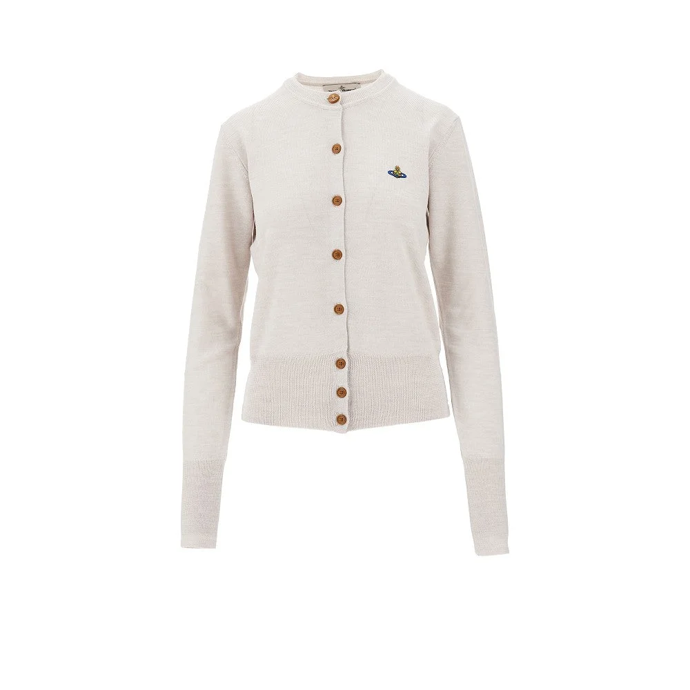 Cardigan made from fine virgin wool yarn, enriched with signature Orb logo embroidery on the chest. Ribbed crewneck, cuffs and bottom hem. Regular fit. DETAILS Model code: 1803002P-Y0006 Color code: P403 Season: FW25 Material: 100% WV Made in: Italy Sku: 29461 Color: Beige Brand: VIVIENNE WESTWOOD