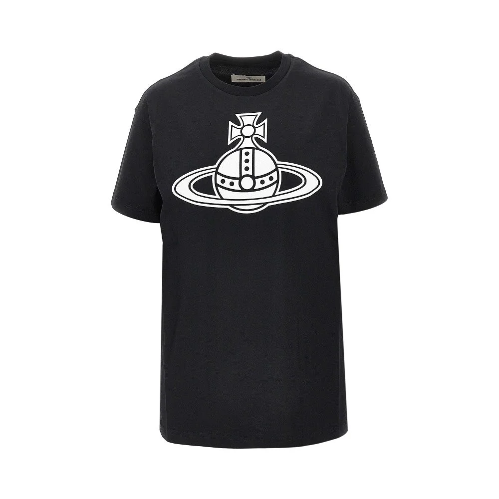 Short-sleeved T-shirt made from organic cotton jersey, enriched with contrasting Orb logo print at front. Micro ribbed crewneck. Regular fit. DETAILS Model code: 3G010049-J001M Color code: N401 Season: FW25 Material: 100% CO Made in: Tunisia Sku: 29463 Color: Black Brand: VIVIENNE WESTWOOD