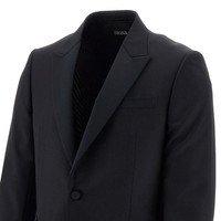 Tailored suit made from wool and mohair blend fabric. Single-breasted jacket with satin lapel collar, buttoned cuffs, chest pocket, side welt pockets, rear splits and viscose lining. Pants with concealed hooks closure, zip fly and four pockets. DETAILS Codice Modello: 717701A7 Brand: ZEGNA Stagione: SS24 Materiale: 84% WO, 16% WM Made in: Switzerland Sku: 7276