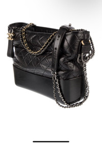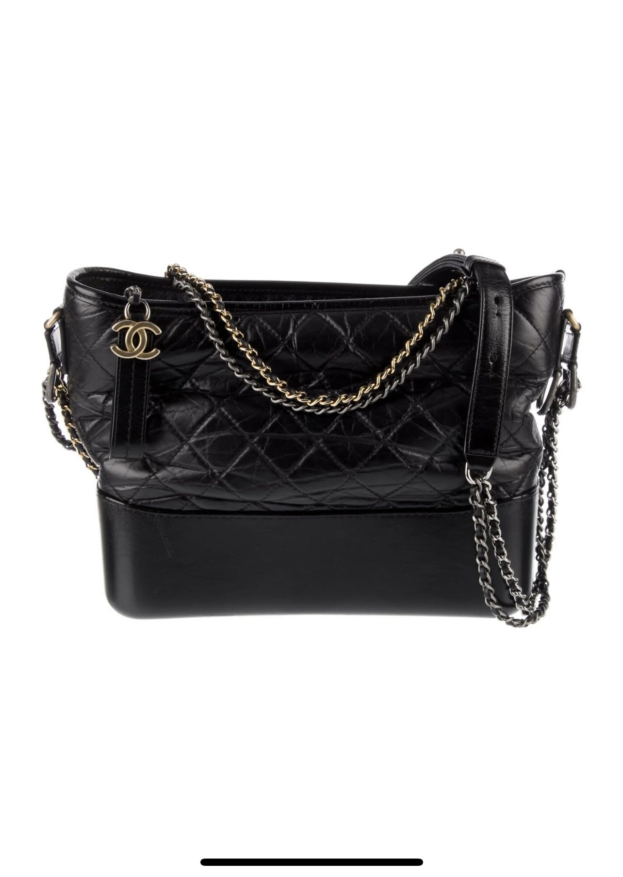 Very good condition Chanel Gabrielle hobo aged skin leather black medium