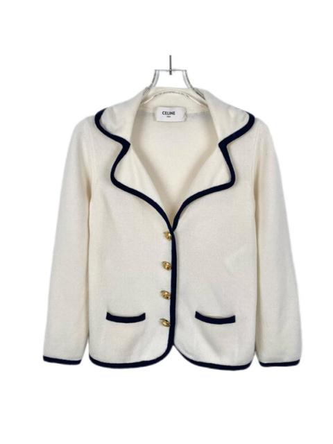 Celine White Cashmere Lapel Single Breasted Long Sleeve Knitted Cardigan Coat Wi