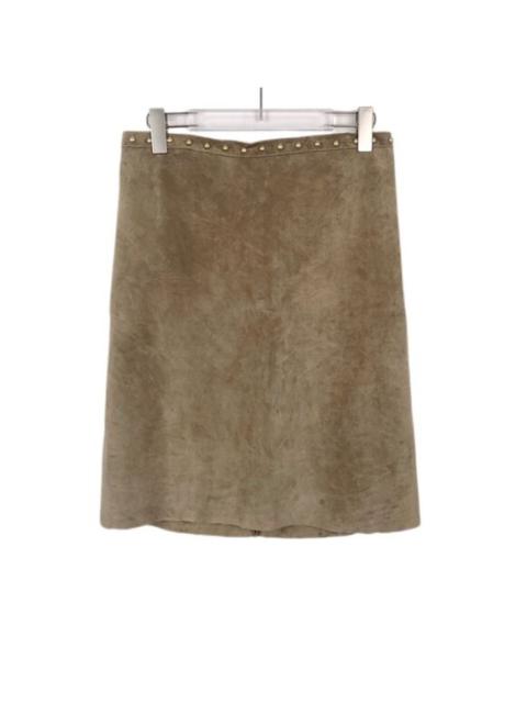 'S MaxMara - S Maxmara Brown Calfskin & Silk Skirt With Stud Accents Size 38