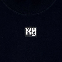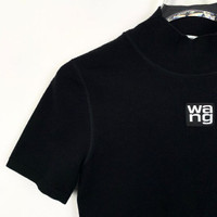 Alexander Wang Black Mock Neck Short Sleeve Ribbed Knit Top