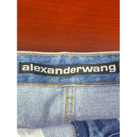 Alexander Wang Blue Denim Frayed Hem High-Rise Shorts With Logo Waistband Size 2