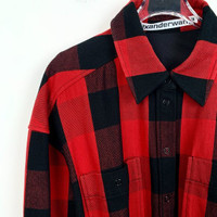 Grade A H12225 Alexander Wang Colorblock Plaid Cotton Shirt Dress with Belt and Collared Design, Size XS, 98% new. Add a modern and edgy touch to your wardrobe—shop now and make this chic piece yours!