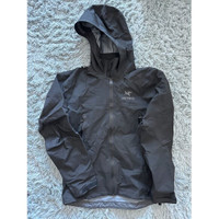 The Arc'teryx beta AR jacket offers exceptional weather protection with its Gore-Tex Pro fabric, designed for durability and breathability. The hood provides additional coverage against the elements, making it suitable for outdoor enthusiasts. • Full zip closure • Adjustable hood • Water-resistant fabric • Two front pockets • Lightweight design Size: Womens M Condition: Pre-Owned Like New