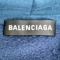 Balenciaga Authentic Logo Blue Hoodie M Cotton Polyester Blend Long Sleeve Pullo