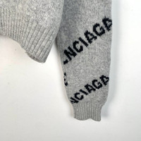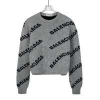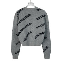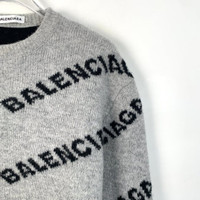 Balenciaga Gray Logo Monogram Wool Crewneck Knit Sweater