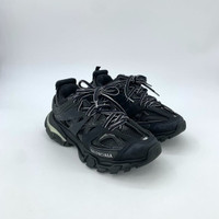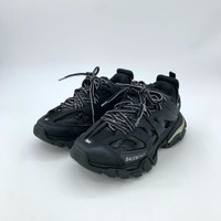 Balenciaga's Track Sneakers offer a blend of style and functionality. They feature a dynamic design with intricate detailing, providing exceptional comfort for urban exploration. The black and white color scheme adds a modern touch to any casual outfit, making them a versatile choice for fashion-forward individuals. • Dynamic sole design • Mesh and synthetic overlays • Lace-up closure H13683 Size: Womens 36 Condition: Pre-Owned Like New