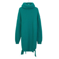Balenciaga Womens Teal Virgin Wool Turtleneck Sweater Dress