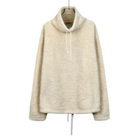 Bottega Veneta Beige Cotton High-Neck Drawstring Teddy Sweatshirt