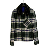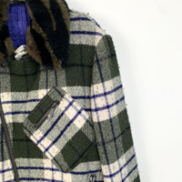 Bottega Veneta Plaid Wool Jacket With Faux Fur Collar Made In Italy Size 50 Gree