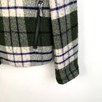 This Bottega Veneta jacket combines elegance with utility. It's crafted from premium wool, featuring a stylish plaid pattern and a luxurious faux fur collar. The Italian craftsmanship ensures durability and timeless appeal. Ideal for those seeking a sophisticated yet practical outerwear piece. • Asymmetrical front zipper • Two side pockets with zippers • Inner quilted lining for warmth • Made in Italy H13817 Size: 50