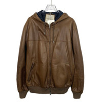 S Grade H11843 Brunello Cucinelli Brown Leather Aviator Jacket, Size XL, 95% new with slight stains. Embrace timeless luxury and sophistication—shop now and make this iconic piece yours!