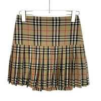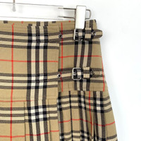 Burberry Beige Nova Check Wool Pleated Mini Skirt With Buckle Detail