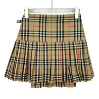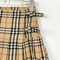 Burberry Beige Nova Check Wool Pleated Mini Skirt With Double Buckle Fastenings