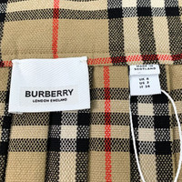 This Burberry skirt features the iconic Nova Check pattern, offering timeless elegance. Crafted from 100% wool, it provides warmth and sophistication. The double buckle detail adds a stylish touch, making it a versatile addition to any wardrobe. • Double buckle closures • Pleated design • Mini length • Made in Scotland Small fraying observed at hemline. X11802 Size: Womens 36 Condition: Pre-Owned Like New