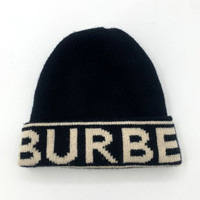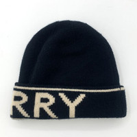 Burberry Black & Cream Reversible Knit Beanie Hat 100% Cashmere Unisex