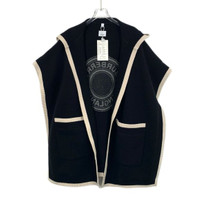 Burberry Black Hooded Wool & Cashmere Cape With Logo Detail One Size Ribbed Trim