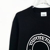 Grade A Q12279 Burberry Black Logo Print Stripe Crewneck Knit Sweater, Size M, 95% new with slight yellowing stains. Original price: $930. Don’t miss the chance to own this timeless classic—shop now and elevate your style!