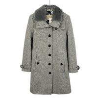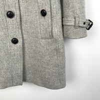 Burberry H11391 Brit Series Gray Wool Single-Breasted Coat, size 38 (S), 95% new with minor snags, stains, and yellowing on cuffs, a refined yet affordable option for timeless elegance.