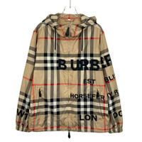 Grade A H12440 Burberry Brown Check and Letter Print Hooded Drawstring Zip-Up Jacket, Size S, 95% new with slight creases. Original price: $1,870. Stay stylish and comfortable with this iconic piece—shop now and make it yours!