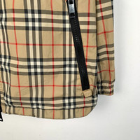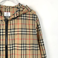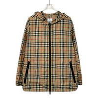 Grade A Burberry X11257 Brown Classic Check Hooded Zip-Up Jacket, size 42, 98% new, originally priced at approximately $1,379 USD, a perfect blend of elegance and everyday practicality.
