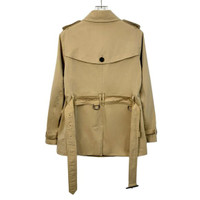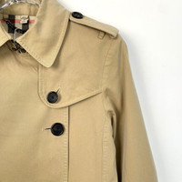 Grade A X12535 Burberry Brown Cotton Double-Breasted Trench Coat with Belt and Collared Design, Size 38 (S), 95% new with slight thread pulls. Add a touch of timeless sophistication to your wardrobe—shop now and make it yours!