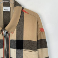 Grade A Burberry H11425 Brown Sheepskin Striped Collar Long-Sleeve Zip-Up Jacket, size XL, 98% new, originally priced at approximately $1,216 USD, a refined and stylish piece perfect for versatile layering.