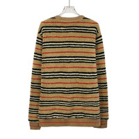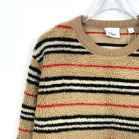 Burberry Brown Striped Fleece Crewneck Long-Sleeve Sweatshirt