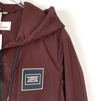 Burberry London England Mens Hooded Burgundy Windbreaker Jacket With Zippered Po