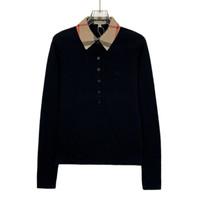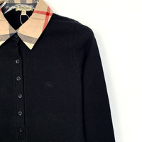 Burberry Long Sleeve Polo Shirt With Nova Check Collar Black Cotton Womens