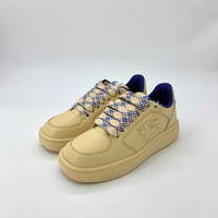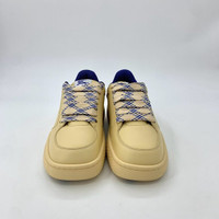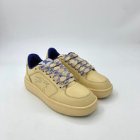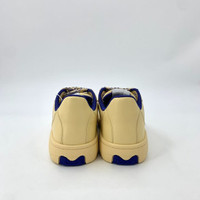 A stylish and durable footwear option, these Burberry sneakers feature a modern beige design accented with blue details, ensuring both comfort and elegance. • Lace-up closure for a secure fit • Rubber sole with grip-enhancing pattern • Includes extra beige laces and box • Embossed Burberry logo detailing h14259