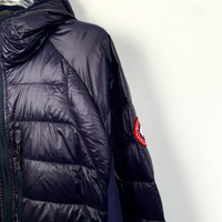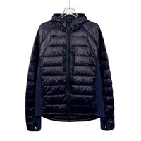 Grade A H12500 Canada Goose Navy Blue Hooded Zip-Up Down Jacket with Logo Patch, Size L, 98% new. Stay warm and stylish with this premium winter essential—shop now and make it yours!