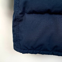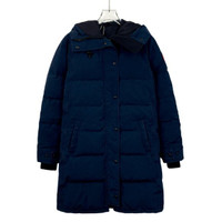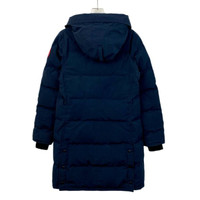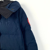 This Canada Goose parka offers warmth and durability with a down filling. The long length and hood with fur trim provide superior protection against cold weather conditions. Crafted with quality materials, this navy parka is a reliable choice for winter wear. • Long parka style • Down filling for warmth • Hood with fur trim • Snap button closures • Two front pockets H12668