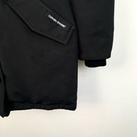 Crafted for warmth and style, this Canada Goose parka features a luxurious fur-trimmed hood. Ideal for cold climates, its timeless black design offers both functionality and elegance. • Fur-trimmed hood • Button and zipper closure • Two front pockets • Canada Goose logo patch on sleeve • Long sleeves H12648