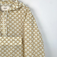 Celine Beige Triomphe Monogram Hooded Half-Zip Hoodie