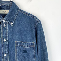 Celine Blue Arc De Triomphe Logo Cotton Denim Shirt M Size Made In Japan