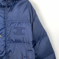 Celine Blue Triomphe Logo Embroidered Hooded Down Jacket