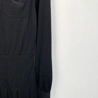 Celine Paris Black Long Sleeve Pleated Midi Dress With Gold Buttons & Embroidere