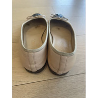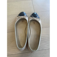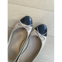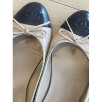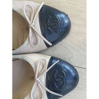 Chanel Beige & Black Leather Ballet Flats With Bow Accents Size 39