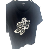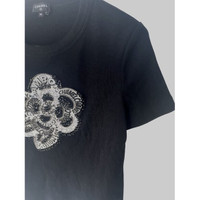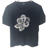 Chanel Black Camellia Embellished Short Sleeve T-Shirt Womens Size 34