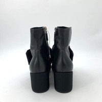 Chanel Black Leather Camellia Chunky Heel Ankle Boots With Zipper Closure Size 3