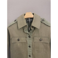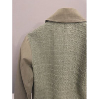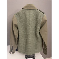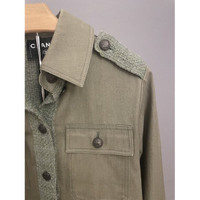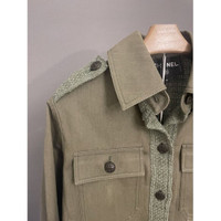 Chanel Military-Inspired Olive Green Jacket With Textured Tweed Panels & Button
