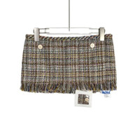 A sophisticated tweed mini skirt featuring a multicolor pattern, fringe hem, and braided waistband. Made in France for a timeless and elegant appeal. • Fringe hem for added texture • Braided waistband detail • Button accents with iconic logo • High-quality construction • Made in France 009212 Size: Womens 36 Condition: New With Tags